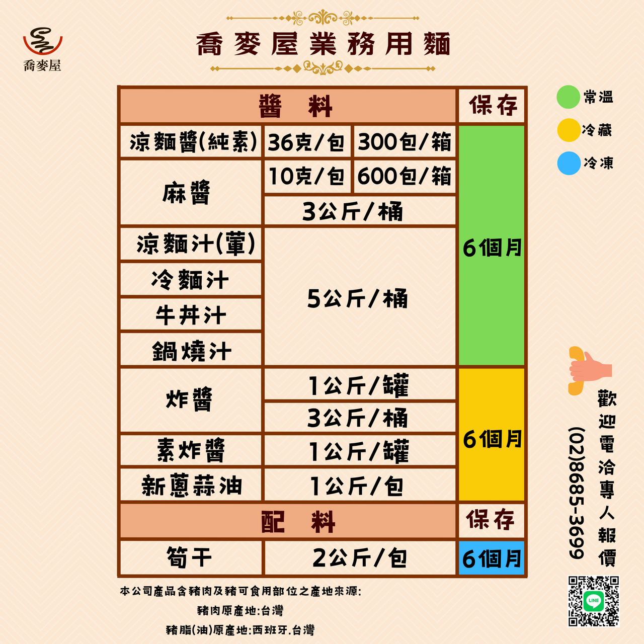常溫麵款